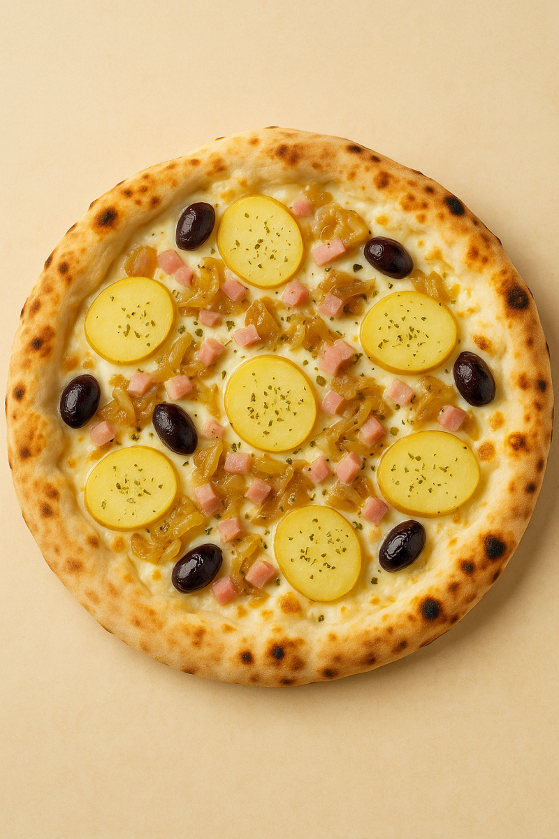 Crème fraîche - Fromage - Reblochon - Pommes de terre - Lardons - Oignons - Olives - Origan