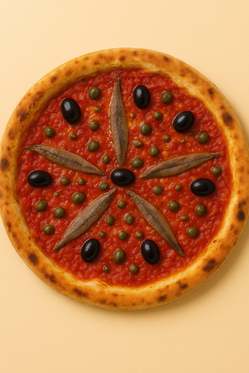 Sauce tomate - Anchois - Câpres - Olives - Origan